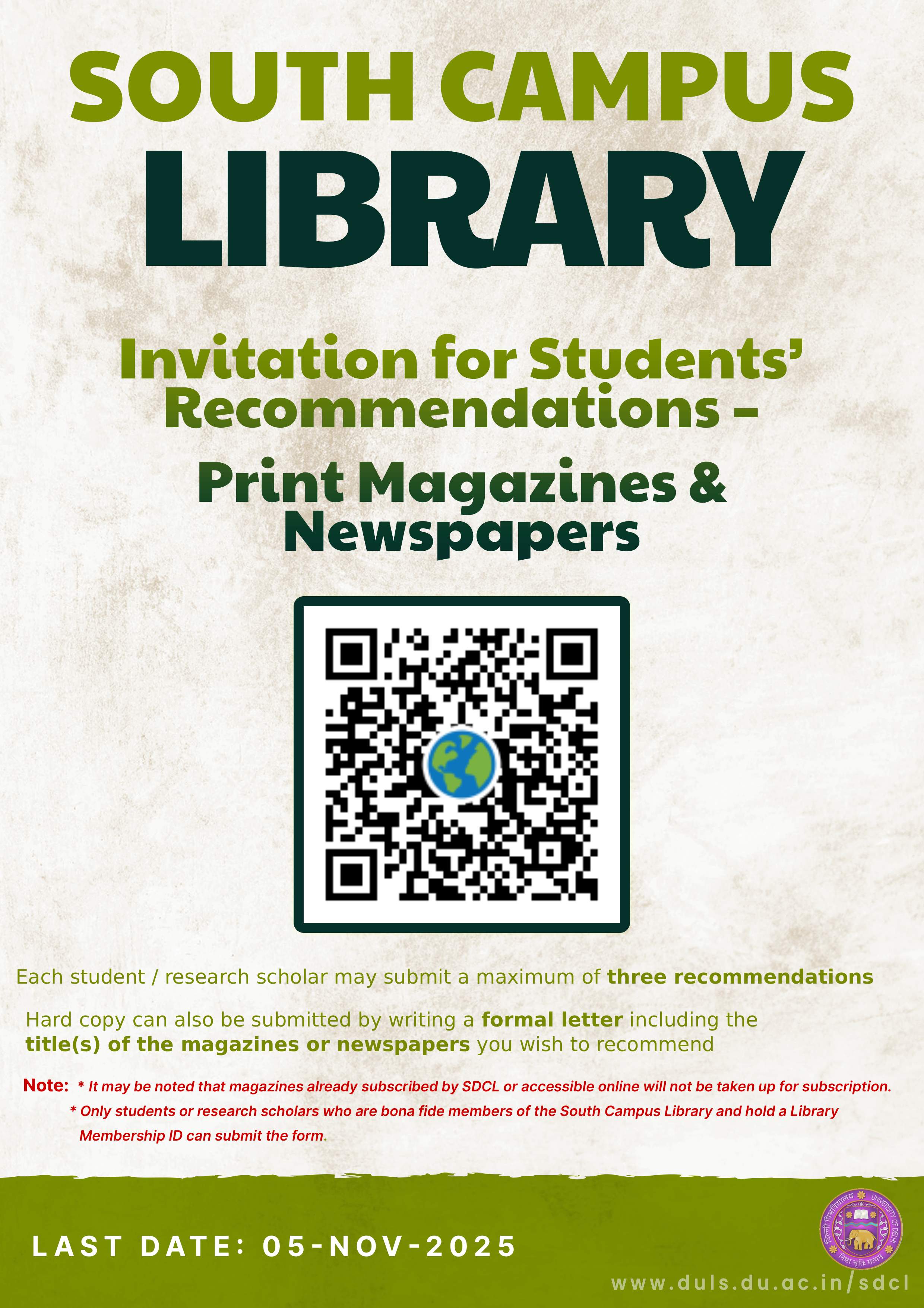Notice: Temporary Closure of 24x7 Reading Hall-Ground Floor